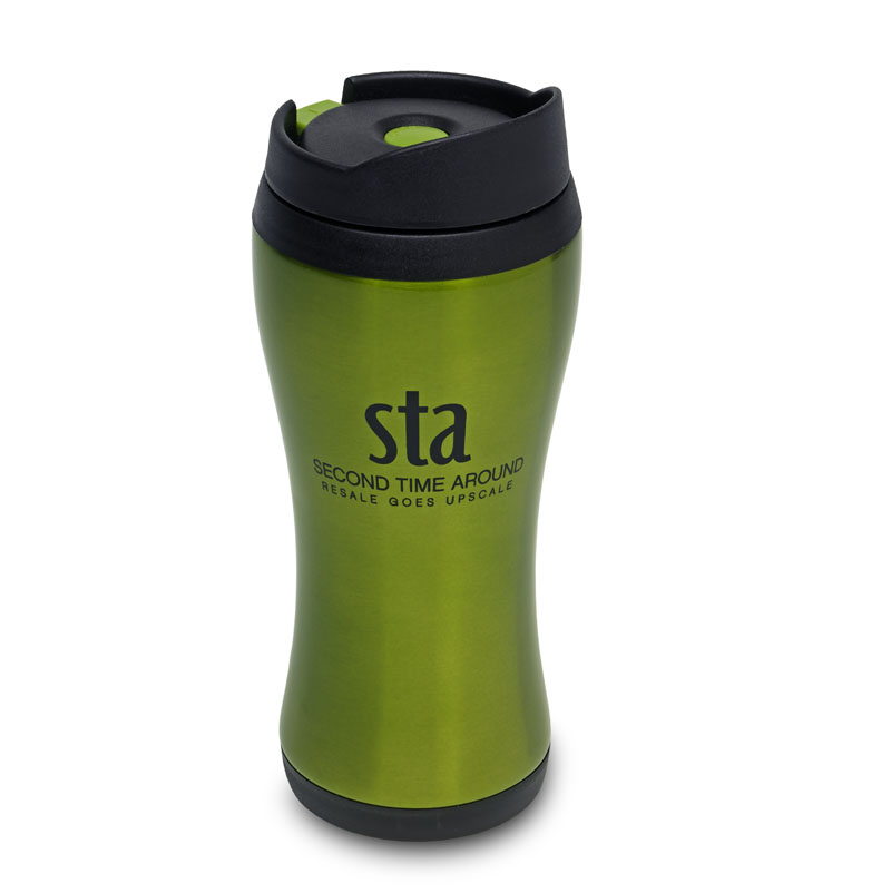 Take a jolt of caffeine and STA with you on-the-go! Insulated, 8 inches high in metallic green with a secure, button-push lock spout and the white STA logo on both sides.